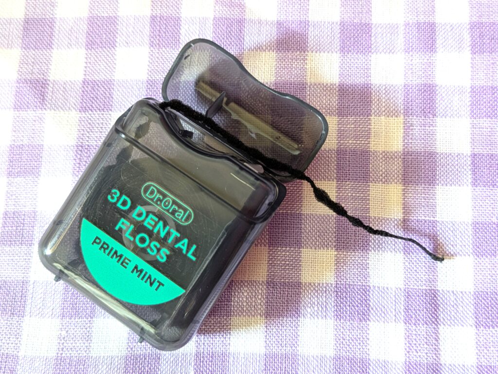 黒いデンタルフロスって珍しいと思ったのですが、これは吸着効果に優れた「炭」を配合しているためです。炭のパワーで、目に見えにくい歯垢をしっかり除去できるだけでなく、フロス自体が黒色なので、絡めとった汚れや歯垢が目で確認できるのも嬉しいポイントです。
