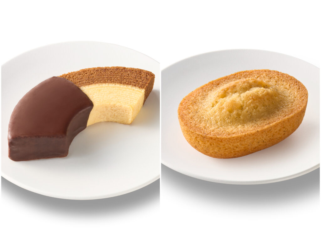 左:「2層のショコラバウムクーヘン チョコ&プレーン」 258円(税込)