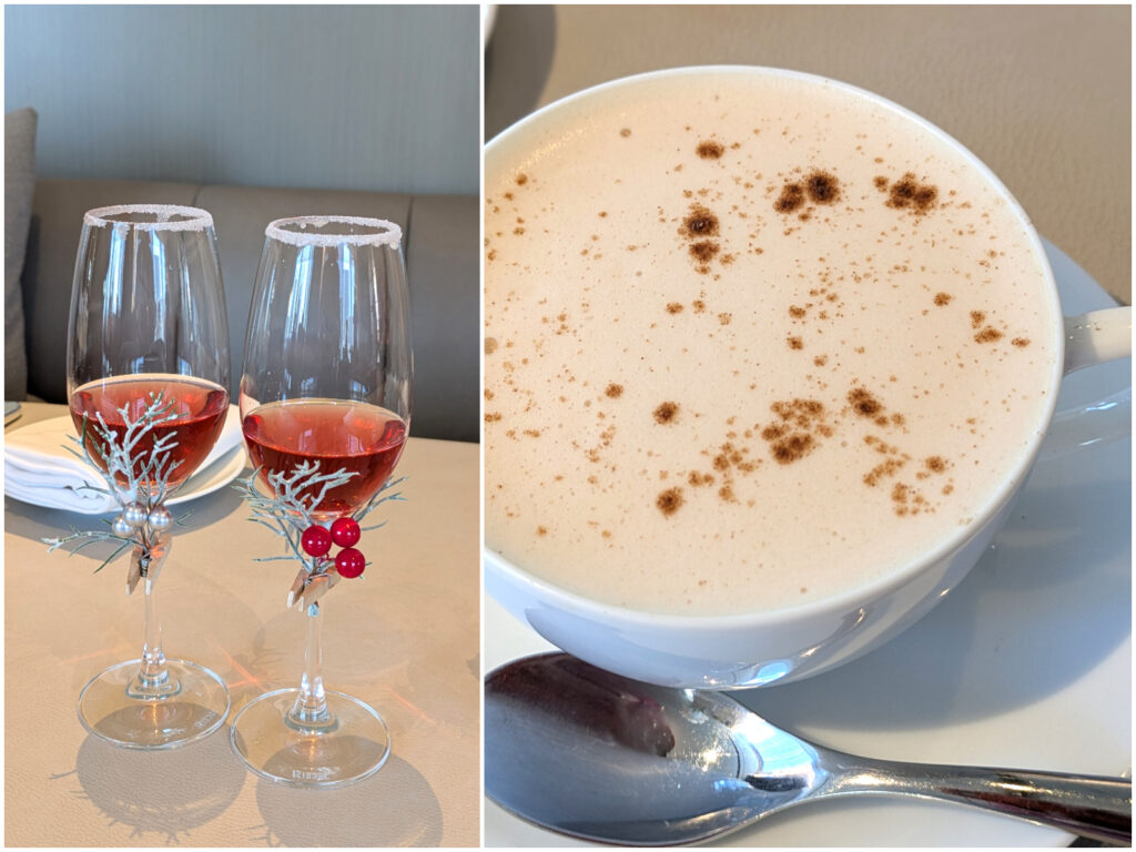 左:特製ウェルカムドリンク「Santa’s Sip サンタのひとくち」