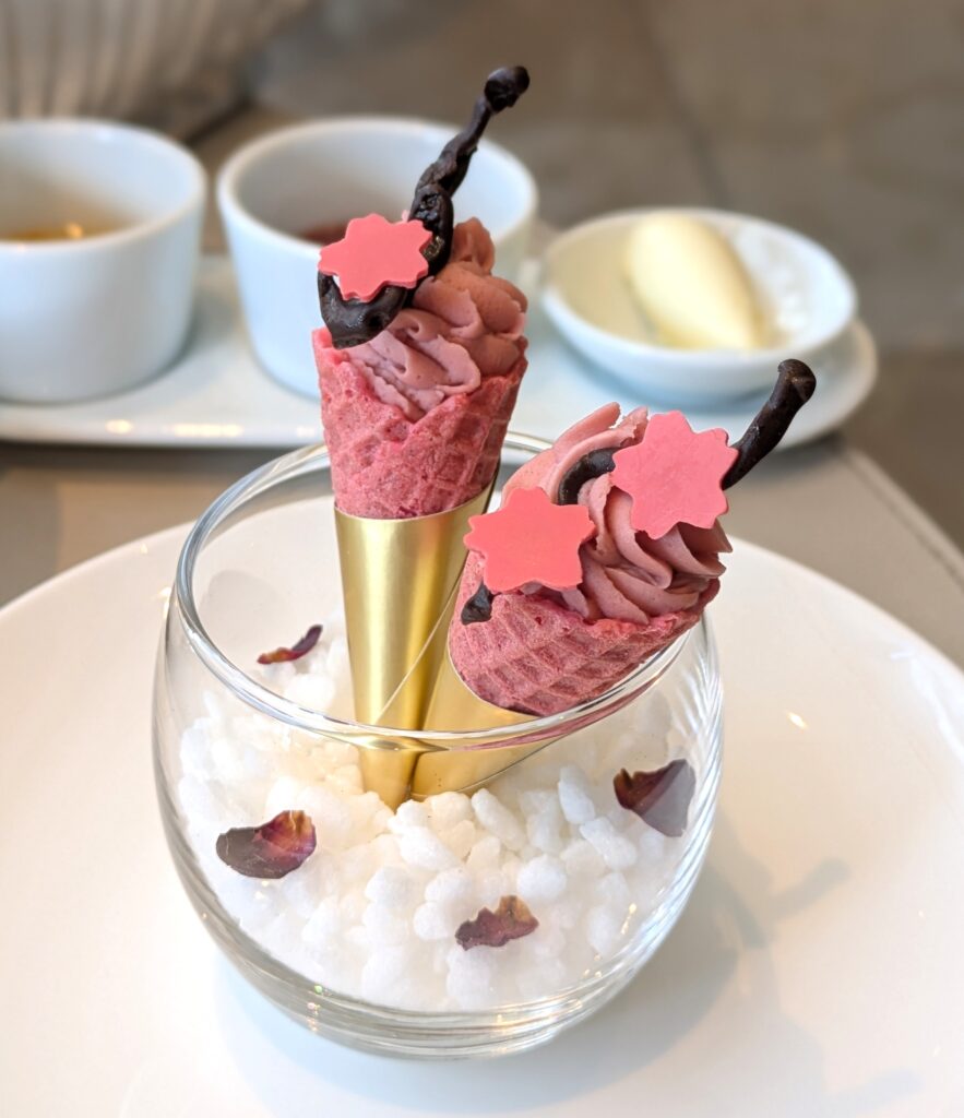 今回のアフタヌーンティーは、「桜」をテーマに、和の美意識と洋菓子の技法を丁寧に重ねたスイーツが主役。一品ごとに桜の儚さや春の高揚感が表現され、見た目にも味わいにも心がときめきます。