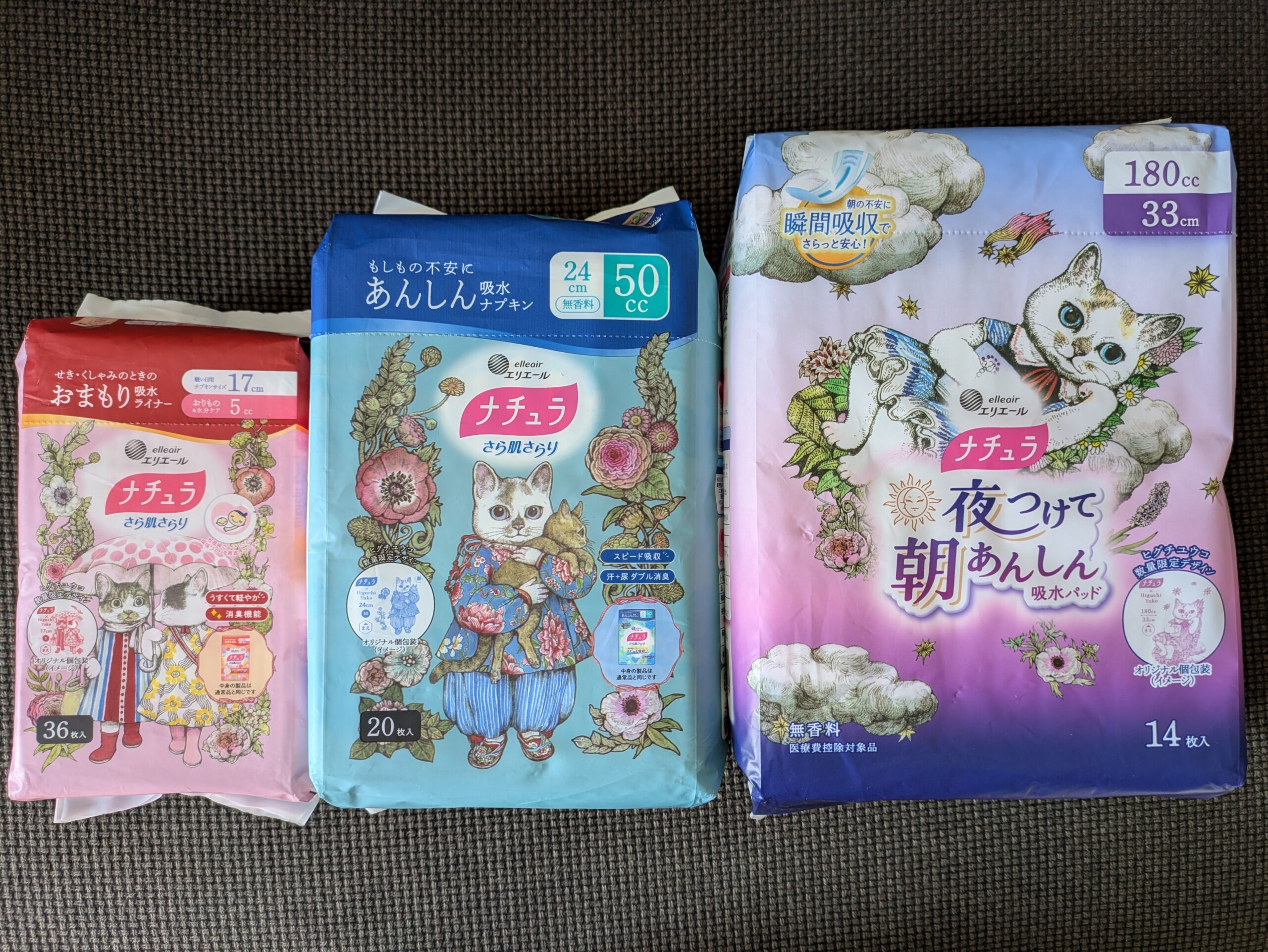 ヒグチユウコさんのネコたちが描かれたパッケージは、思わずバッグに忍ばせたくなる可愛さ。毎日のちょっとした安心を支えてくれる“おまもり”のような存在として、気軽に取り入れられる吸水ケアアイテムです。