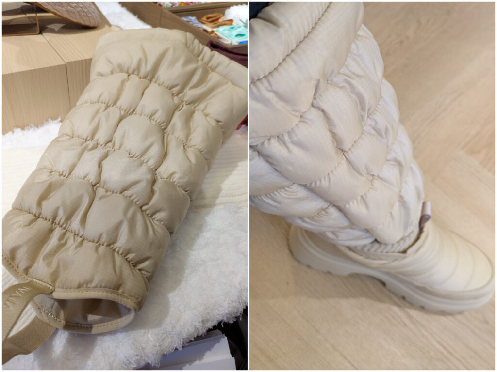 「Tyler」はショート丈ながら履き口にリブを配置し、暖かさを逃さず快適。手持ちのレッグウォーマーや別売りの「Slouch Cuff」を合わせれば、女子旅コーデの幅も広がります。一方「Theo」はミドル丈でキルティング模様が目を引くデザイン。ドローストリングで履き口を調節できるため、暖かさとシルエットの変化を楽しめます。