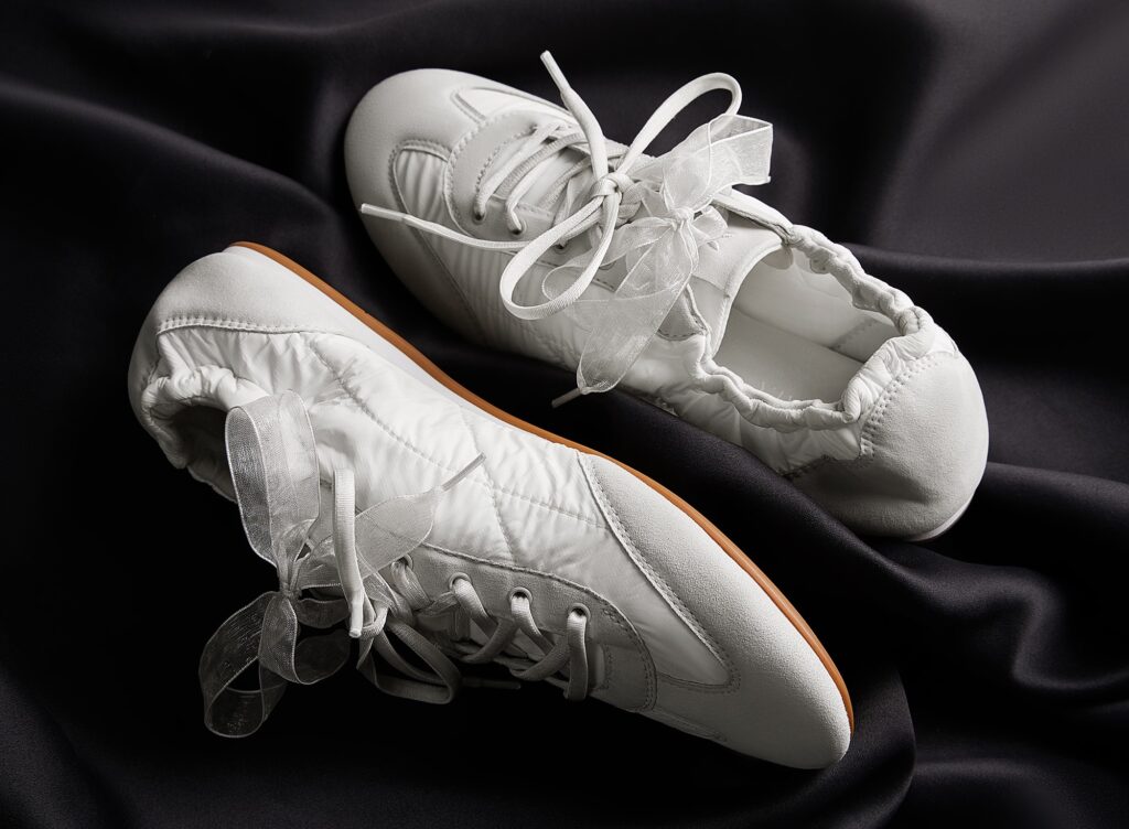 秋のスタイルを先取りできる「Yancy」は、リサイクルプラスチック糸をナイロン風に仕上げ、まるで素足のような軽やかな履き心地が魅力のスニーカーです。ラウンドトゥをスポーティに再設計し、70年代トラックシューズのレトロ感とバレエコアのエレガンスを絶妙にミックス。