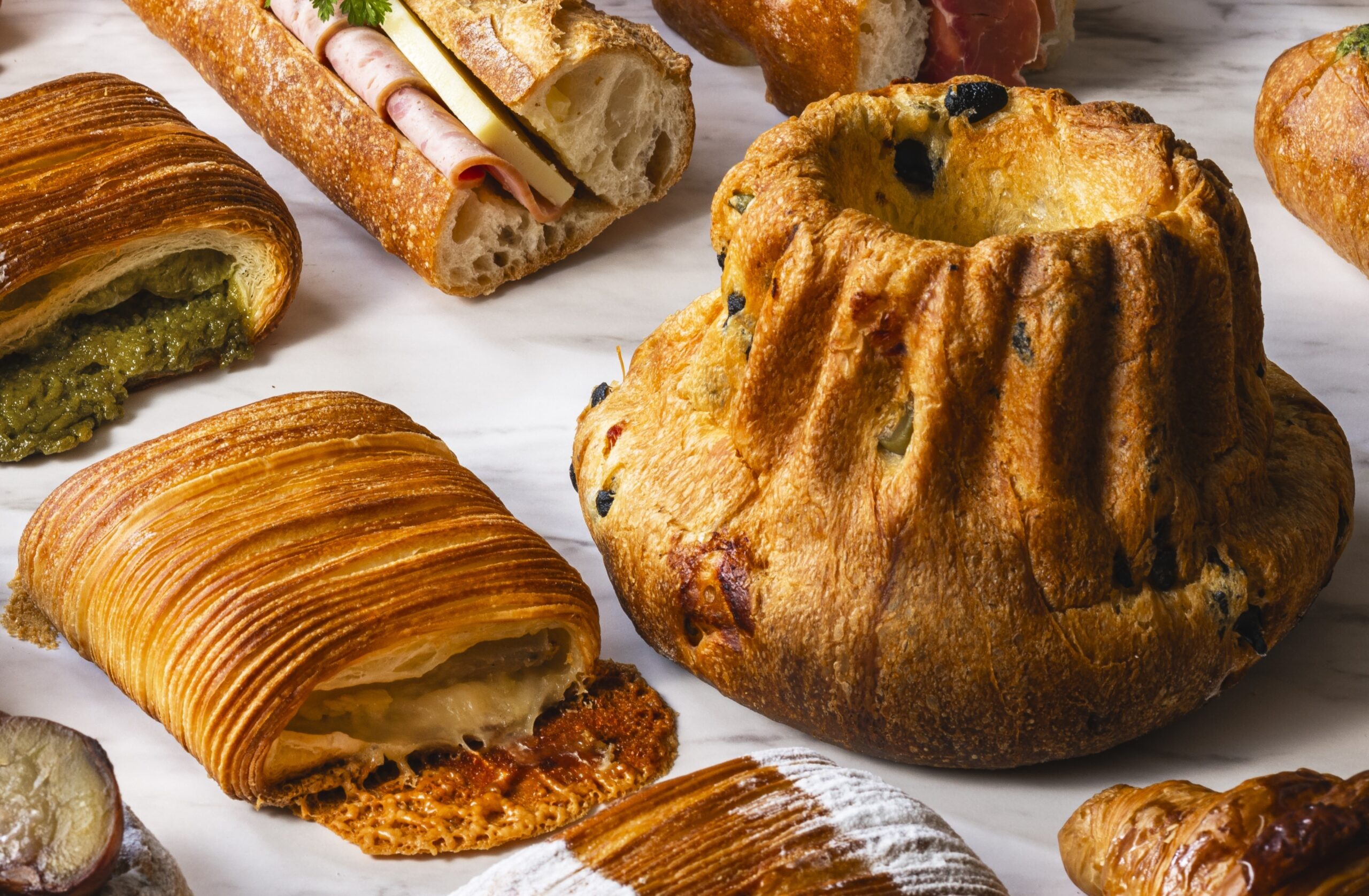 もう一品は、フェスティブシーズンにぴったりな甘くないクグロフが新登場!南仏プロヴァンスをイメージし、隠し味にトリュフペーストを練り込んだ塩味のクグロフには、オリーブやベーコン、セミドライトマトが贅沢に使用されています。